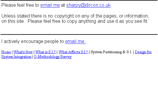 Perhaps the biggest factor affecting System Integration (S.I.) is the partitioning of the system at design time. System integration is all about putting bits of a system together so how the system is split up at design time defines what bits of a system are to be put together and thus what parts of a system need to be integrated into a full system.